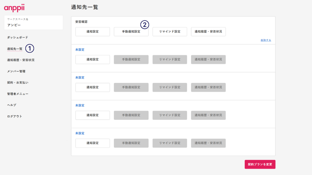 ②対象チャンネルエリアの「手動通知設定」ボタンをクリック
