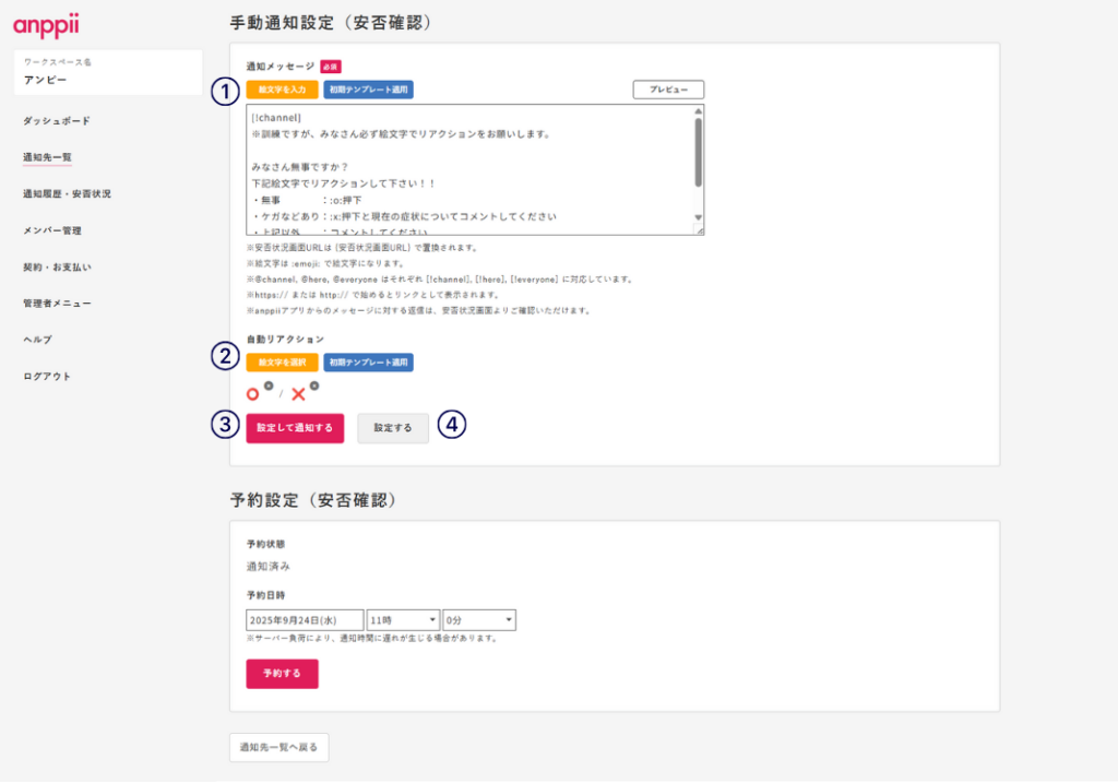 ※設定された絵文字が、通知メッセージに対してanppiiから自動的にリアクションされます。