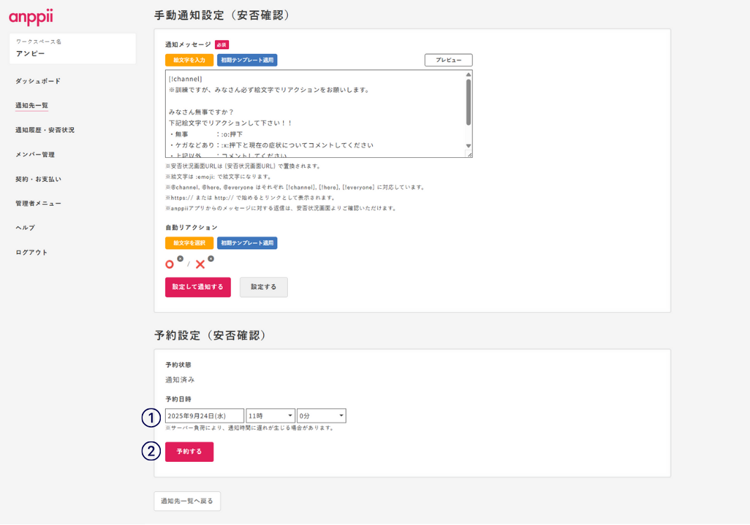 ※設定された絵文字が、通知メッセージに対してanppiiから自動的にリアクションされます。